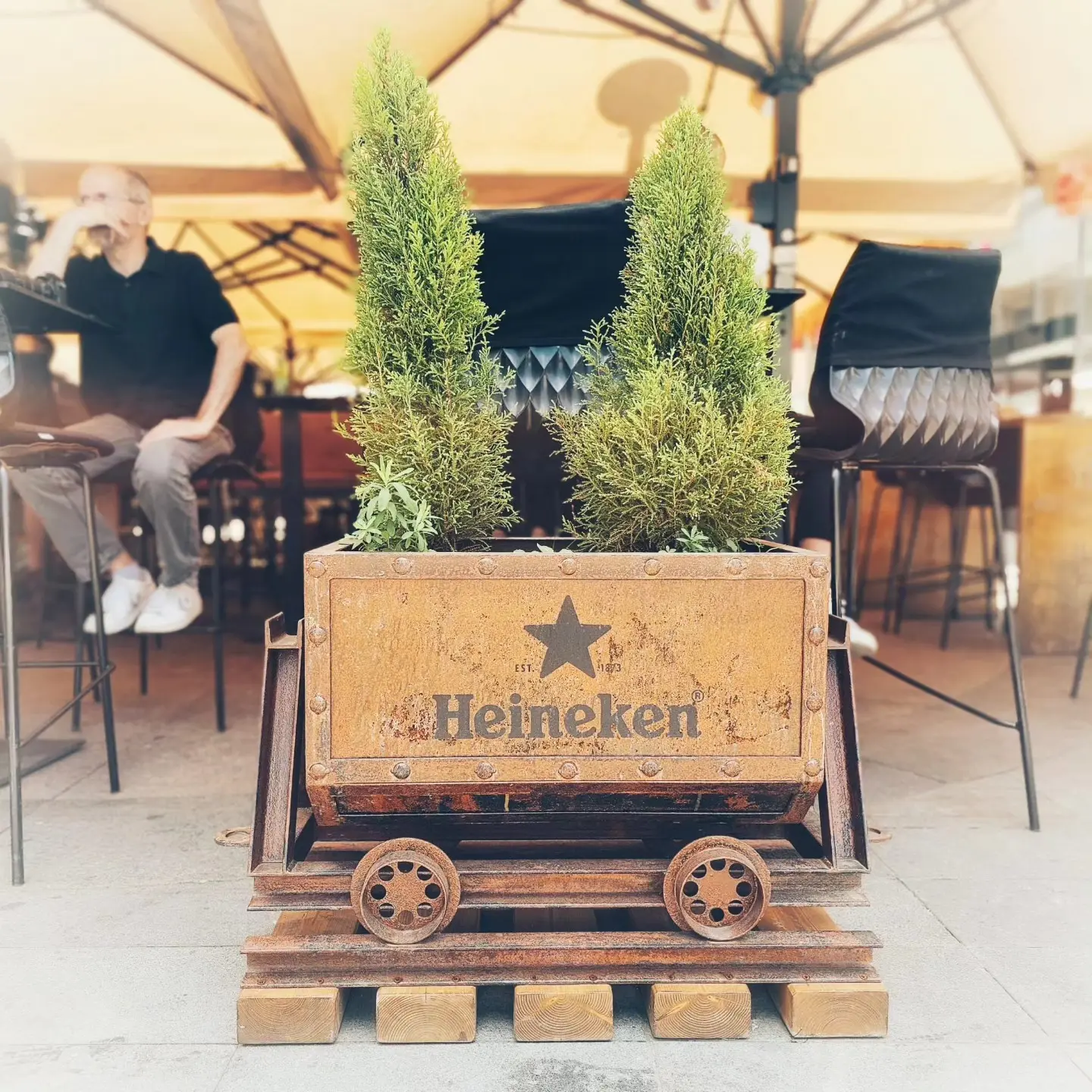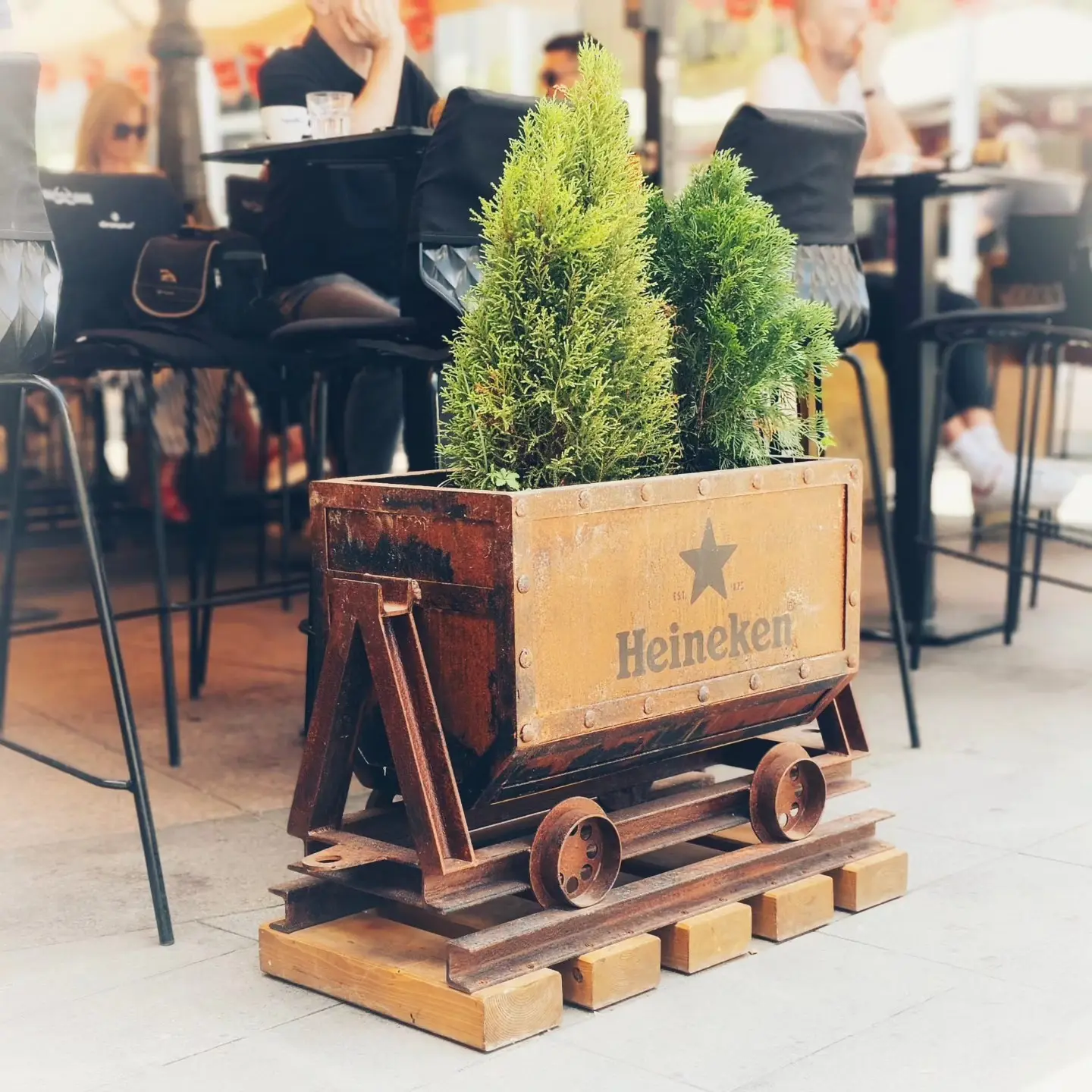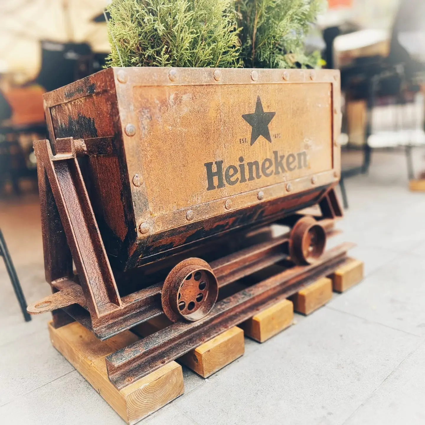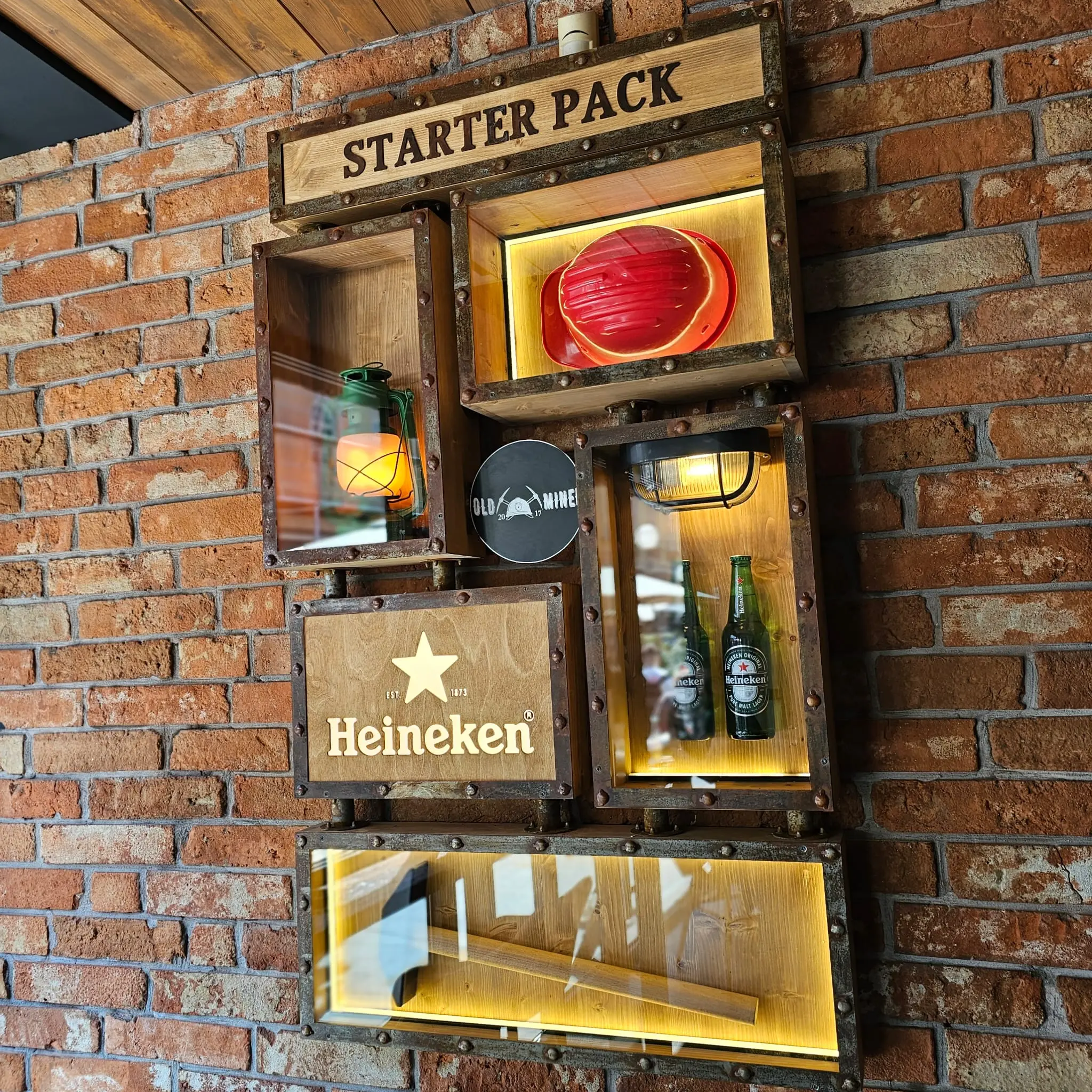 Za dugogodišnjeg klijenta, Heineken Hrvatska, dizajnirali smo i proizveli custom elemente za ugostiteljski objekt Old Miner u Zagrebu. Žardinjere za cvijeće izvedene su kao mali rudarski vagoni izvedeni od patiniranog željeza, dok je u interijeru zidni display izveden kao „miner starter pack“.