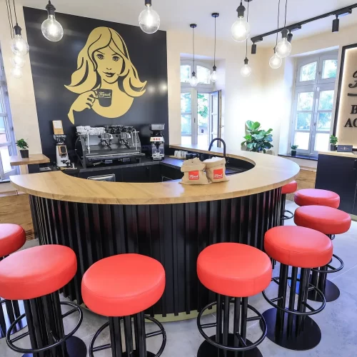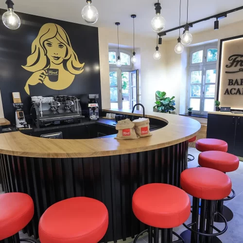 U povijesno zaštićenoj zgradi Francka u Vodovodnoj ulici u Zagrebu dizajnirali smo, proizveli i montirali novi iskorak kompanije u smjeru podizanja kvalitete pripreme toplih napitaka — prostor koji služi kao središte edukacije, inspiracije i izvrsnosti u svijetu toplih napitaka.