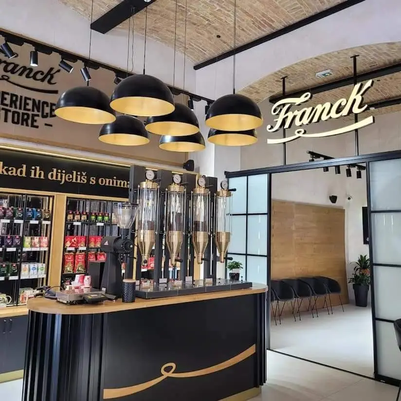 U samom centru Sarajeva dizajnirali smo, proizveli i montirali cjelokupan inventar prvog Franck flagship objekta u Bosni i Hercegovini. Prostor koji se proteže na više od 200m2, organizirali smo na način da sadrži ugostiteljski dio s centralnim šankom, maloprodajni prostor s Franck asortimanom te izdvojeni prostor u kojem se održavaju barističke edukacije te B2B događaji, kako bi prostor imao sve potrebno za potpuni doživljaj Franckovih proizvoda i kulture pripreme i ispijanja toplih napitaka.