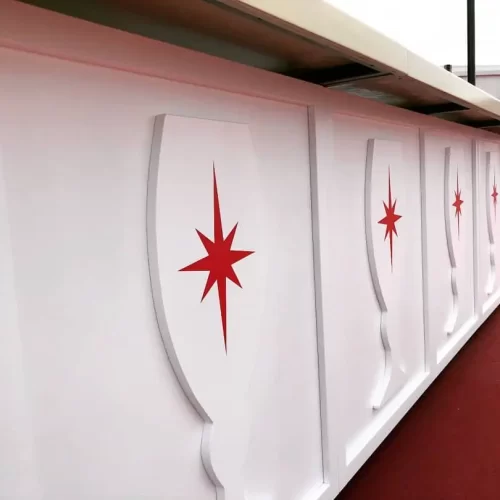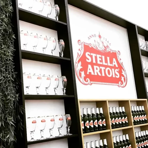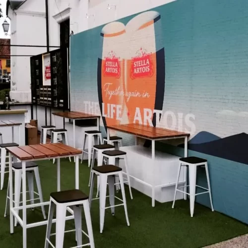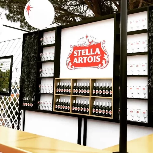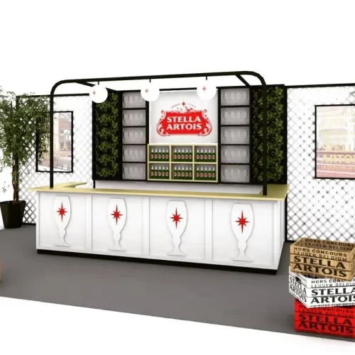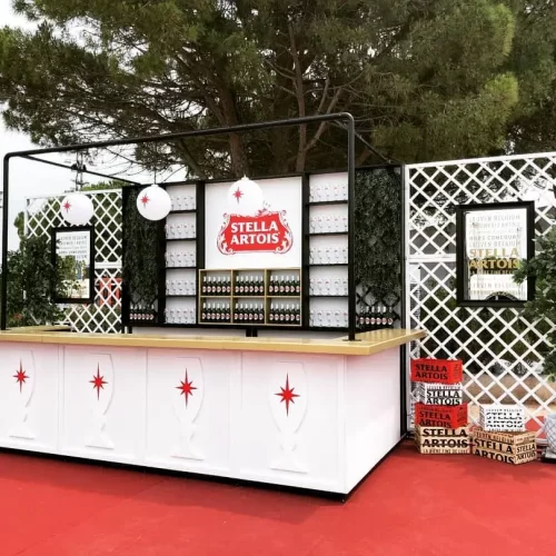 Za brend Stella Artois dizajnirali smo i proizveli mobilni šank koji je izveden od kombinacije punog drveta i metala lakiranog u boju starog zlata. Šank je kompletno montažno-demontažan što je klijentu omogućilo neograničeno korištenje šanka na raznim eventima i aktivacijama.