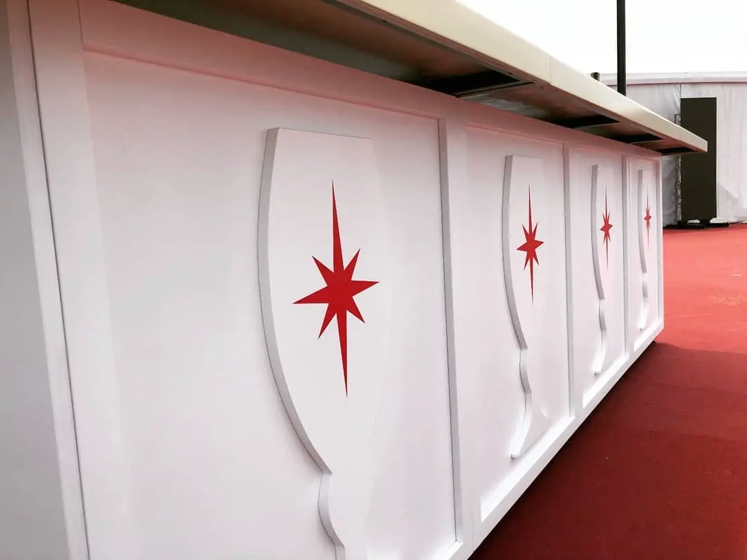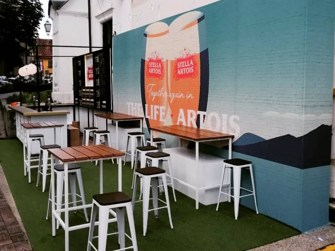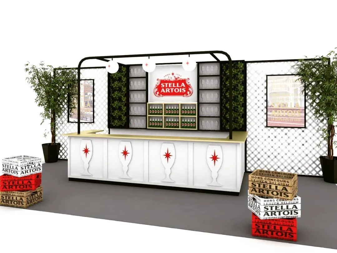 Za brend Stella Artois dizajnirali smo i proizveli mobilni šank koji je izveden od kombinacije punog drveta i metala lakiranog u boju starog zlata. Šank je kompletno montažno-demontažan što je klijentu omogućilo neograničeno korištenje šanka na raznim eventima i aktivacijama.