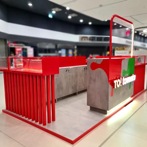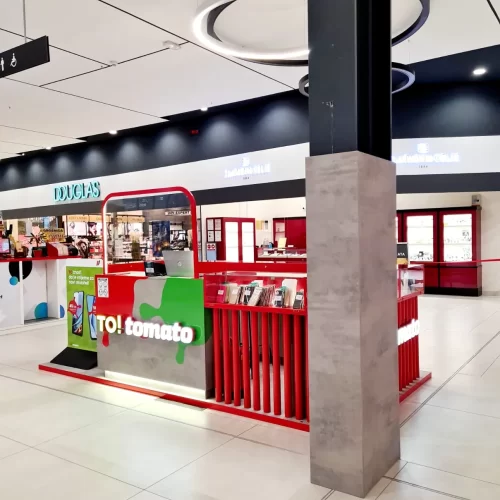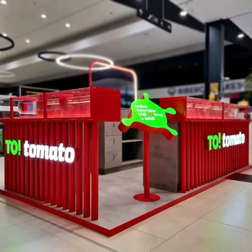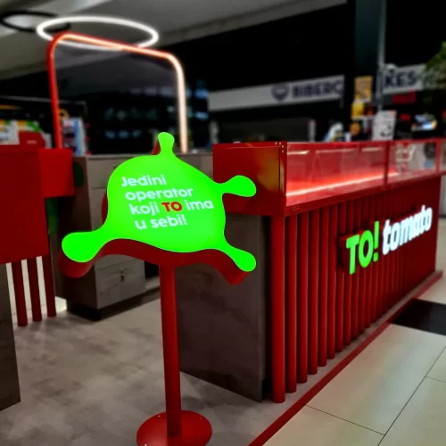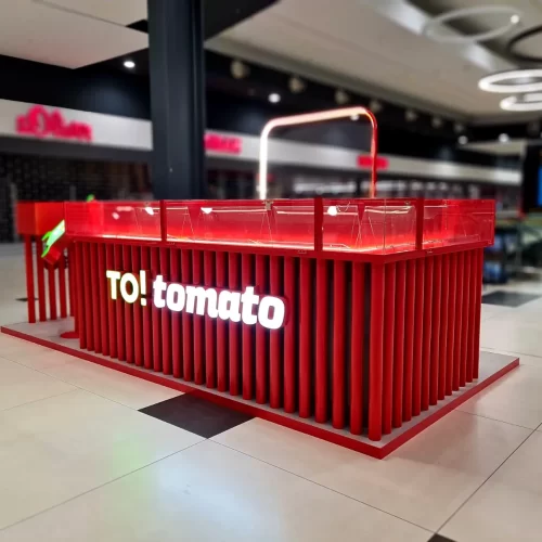 Za klijenta A1 dizajnirali smo i proizveli opremu za nove tomato dućane diljem Hrvatske. Zadatak je bio definirati standardizaciju novih tomato dućana – kao klasični dućan i kao otočne pozicije u shopping centrima.